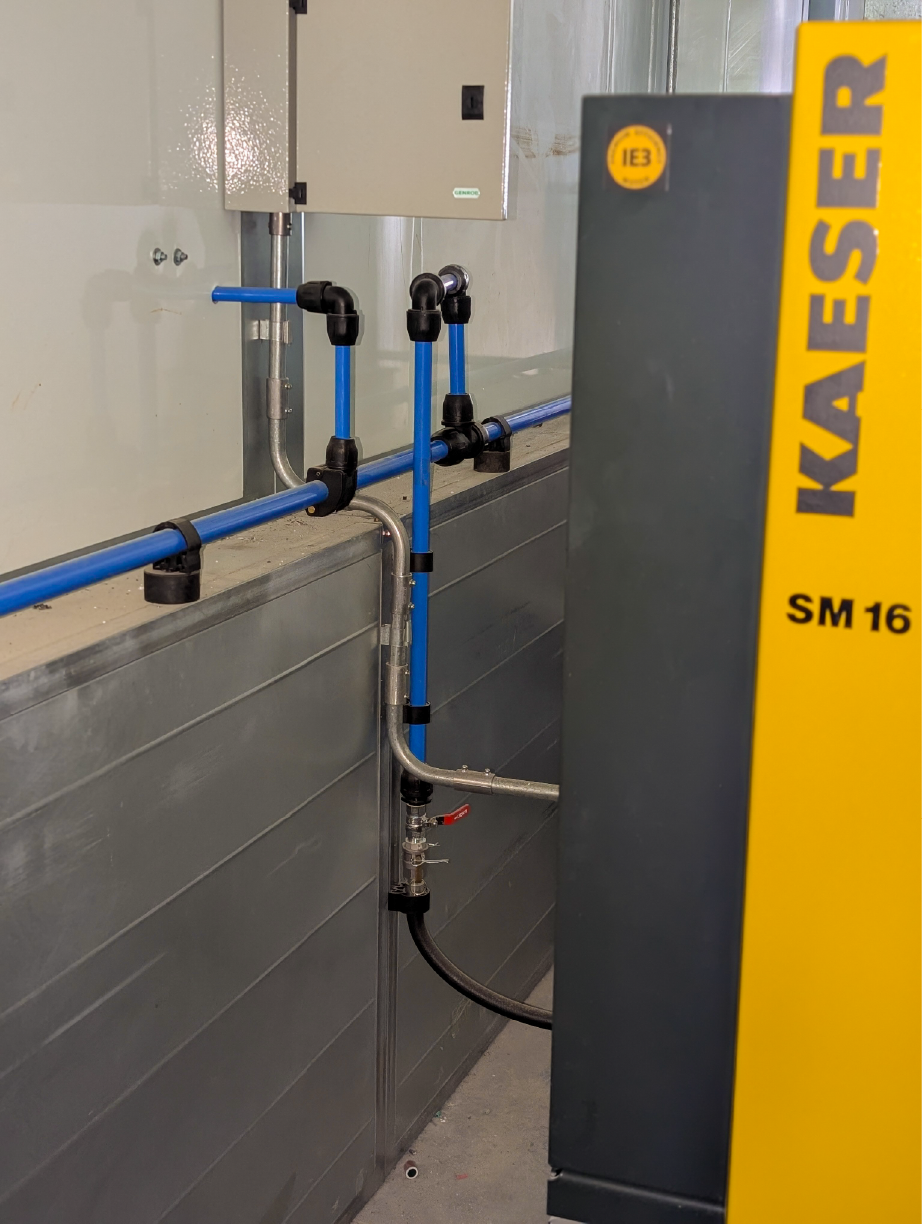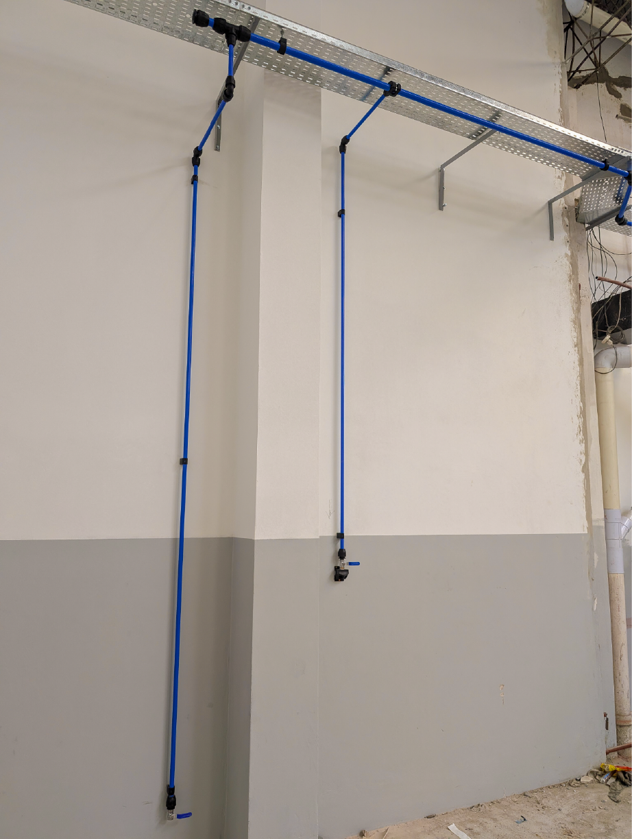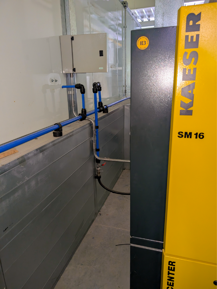 El trabajo incluyó la conexión precisa del equipo compresor y su sistema de tratamiento de aire, asegurando la calidad del suministro desde su origen. Se planificó y ejecutó la conexión de todos los puntos de consumo en ubicaciones estratégicas del taller para maximizar la productividad y la ergonomía. Además, para garantizar la solidez y durabilidad de la instalación, realizamos la fabricación a medida de toda la soportería necesaria para la sujeción de la cañería y las bajadas de consumo, entregando un proyecto robusto, seguro y perfectamente integrado a la infraestructura del cliente.