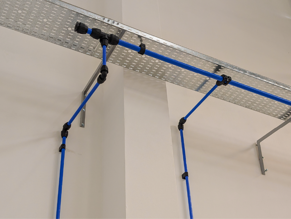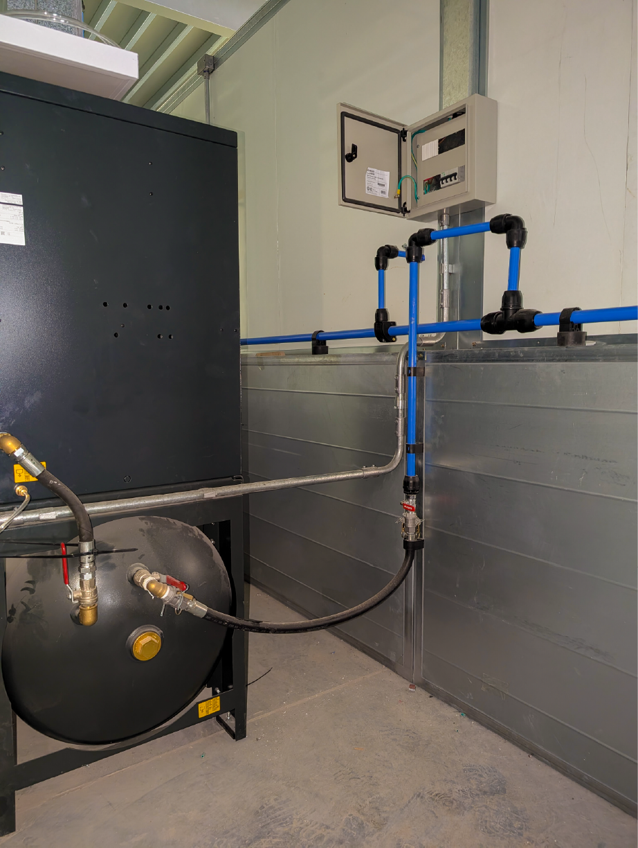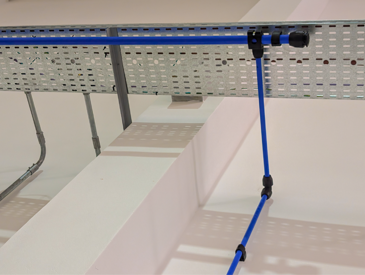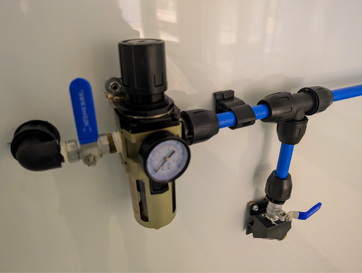 El trabajo incluyó la conexión precisa del equipo compresor y su sistema de tratamiento de aire, asegurando la calidad del suministro desde su origen. Se planificó y ejecutó la conexión de todos los puntos de consumo en ubicaciones estratégicas del taller para maximizar la productividad y la ergonomía. Además, para garantizar la solidez y durabilidad de la instalación, realizamos la fabricación a medida de toda la soportería necesaria para la sujeción de la cañería y las bajadas de consumo, entregando un proyecto robusto, seguro y perfectamente integrado a la infraestructura del cliente.